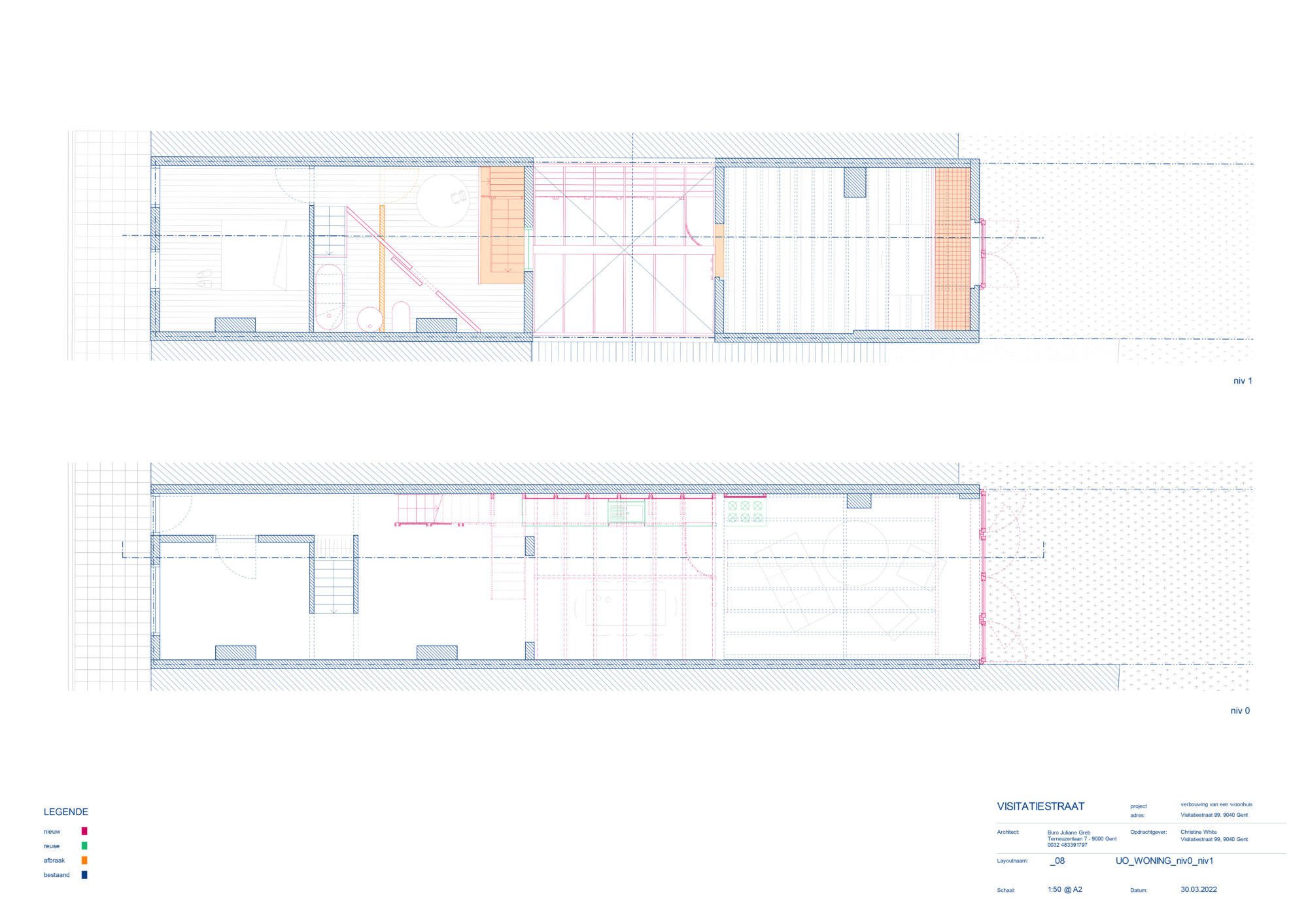 The semi-attached house situated between a quiet street on the outskirts of Ghent and a popular birdwatching nature reservoir is standing shoulder to shoulder as the submissive counterpart to the taller and larger neighbor house. Due to the ground conditions and several previous alterations, the construction had been weakened, resulting in it starting to tilt. Rather than demolishing the building, we decided to add a supporting structure in the form of a tower. This open steel tower serves as a new gate to the property and made it possible to relocate the entrance from the ground to the first floor. The new position of the entrance also allowed us to lift the common living areas from the dark groundfloor to the two upper floors, offering the view to the green landscape behind the house as well as providing more daylight. The house is realized with an extensive use of reused elements and materials from different buildings in the area, such as windows, doors, stairs, timber, bricks, roof tiles and even insulation.