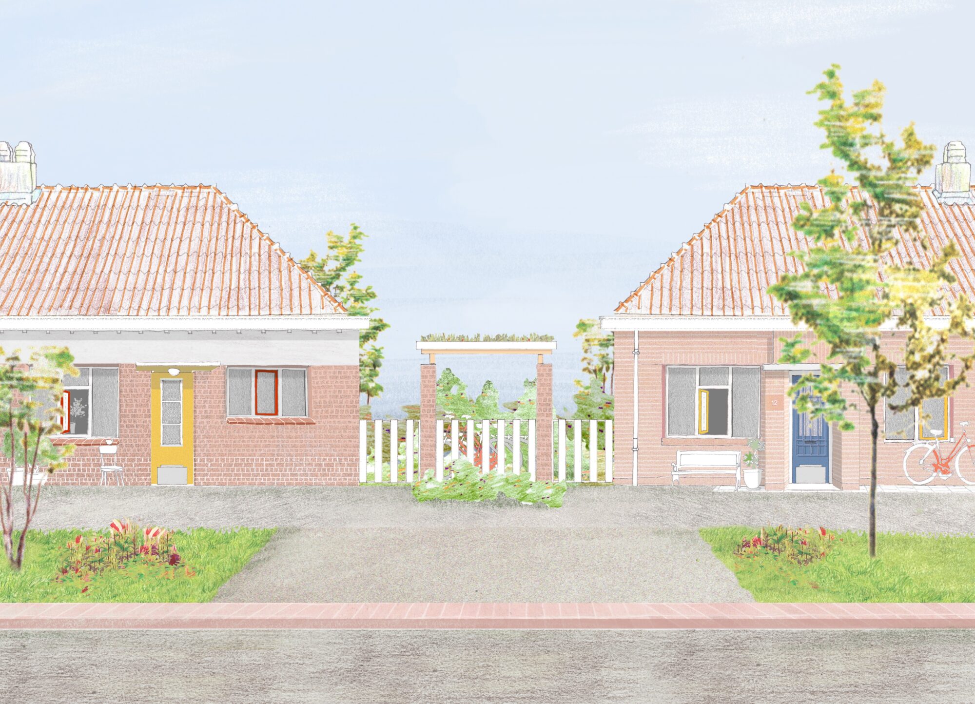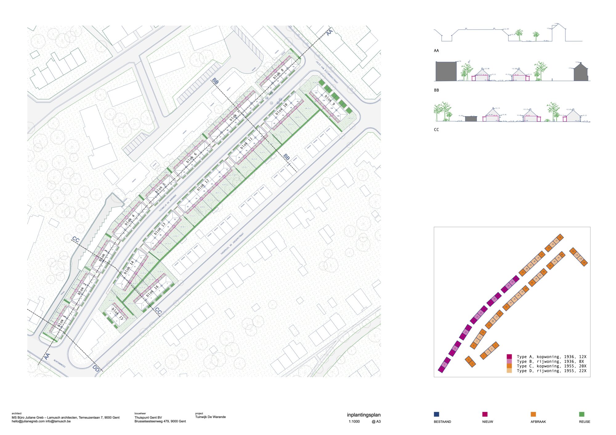 The renovation of the 62 social housing units for elderly people in the Tuinwijk de Warande is aiming to enhance both the functionality and livability of the neighborhood. While maintaining livable conditions throughout the phased renovation, the homes are being upgraded in ways that improve their connection to the street and garden, while also rethinking interior layouts to better suit contemporary needs. Within the compact footprint, the reconfigured floorplans introduce a flexible spatial framework, allowing different patterns of use and enabling residents to appropriate the interior organization over time. The protected street facade will be respectfully renovated and enriched by adding communal bike storages in between the different blocks.